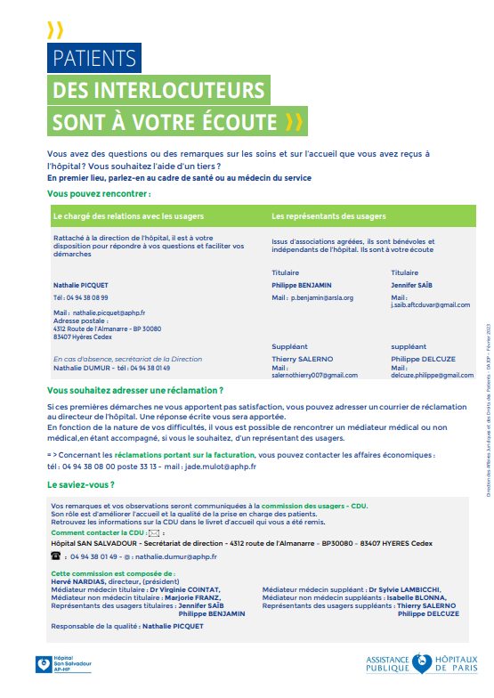 Il existe plusieurs associations de bénévoles œuvrant au sein de l’établissement pour proposer des activités aux personnes hospitalisées / accompagnées :